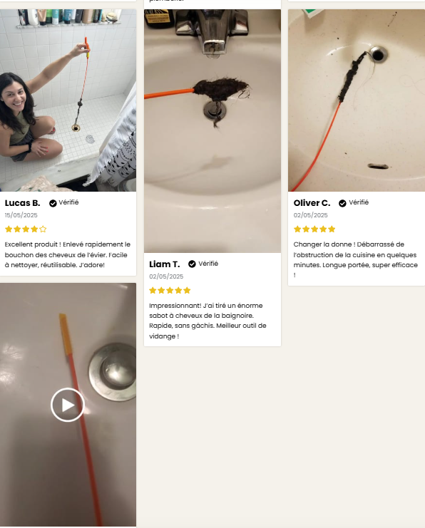 Le ClogMaster Pro est un outil pratique, efficace et réutilisable conçu pour éliminer rapidement les cheveux, graisses et débris coincés dans vos canalisations. Facile à utiliser, il vous évite les produits chimiques agressifs et les frais de plombier.
